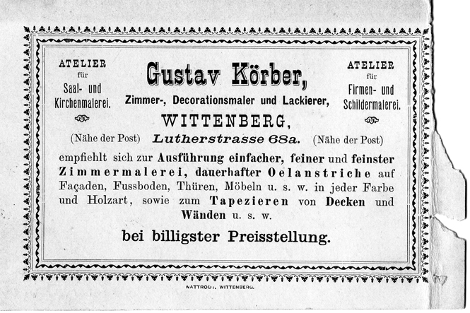 | 1875 – 1920 | Malermeister in Lutherstadt Wittenberg, |